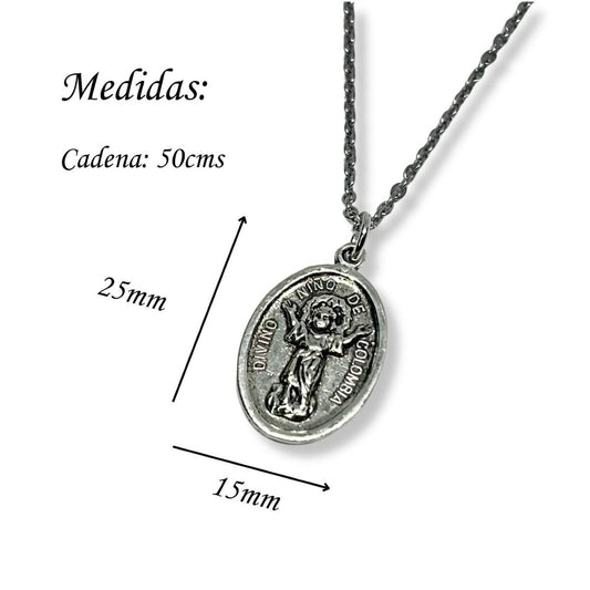 Dije Señor de los Milagros y Cadena Dorada - Acero