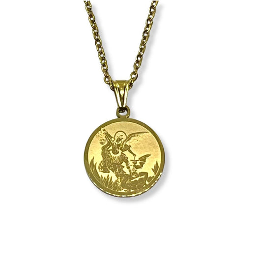 Dije San Miguel Arcangel y Cadena Dorado - Acero