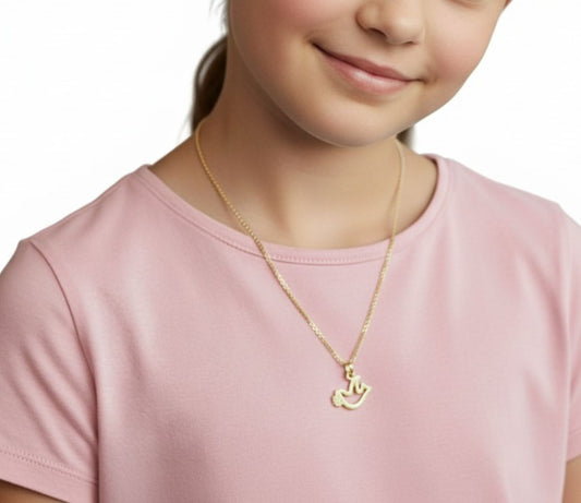 Dije Espíritu Santo Redondo y Cadena Dorada - Acero