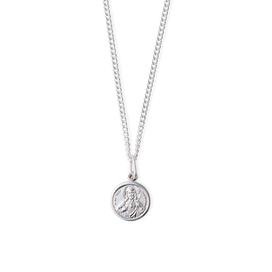 Dije Medalla de San Benito 10mm y Cadena - Plata