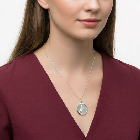 Dije de la Virgen de la Medalla Milagrosa y Cadena - Plata
