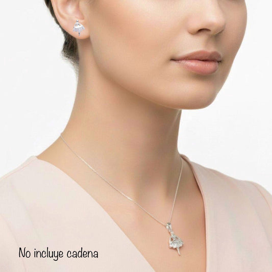Juego de Aretes y Dije Cruz con Brillos - Plata