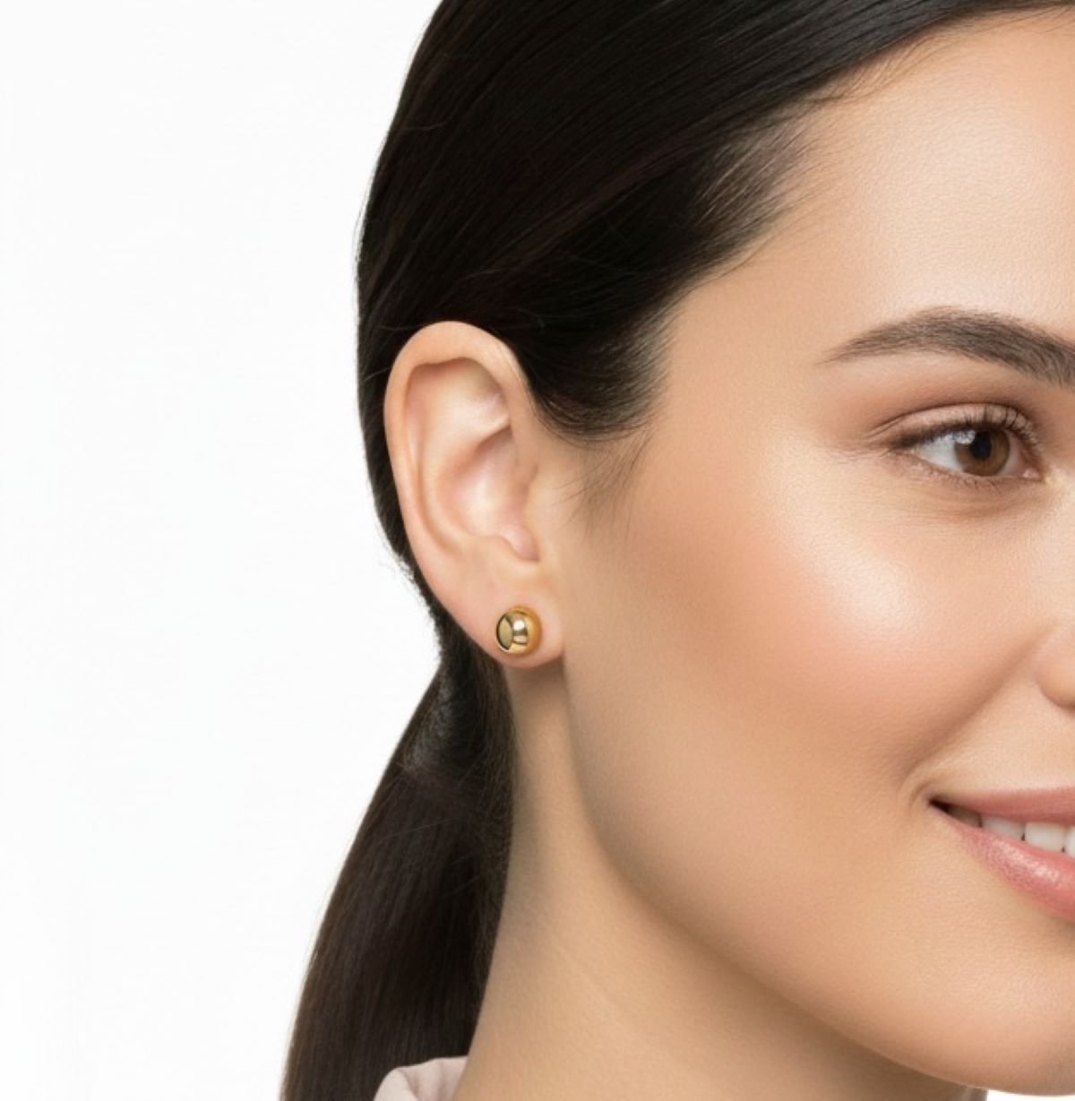 Aretes esféricos elaborados en plata con baño en oro amarillo. Su diseño atemporal y acabado dorado los hace perfectos para uso diario o para ocasiones especiales.
