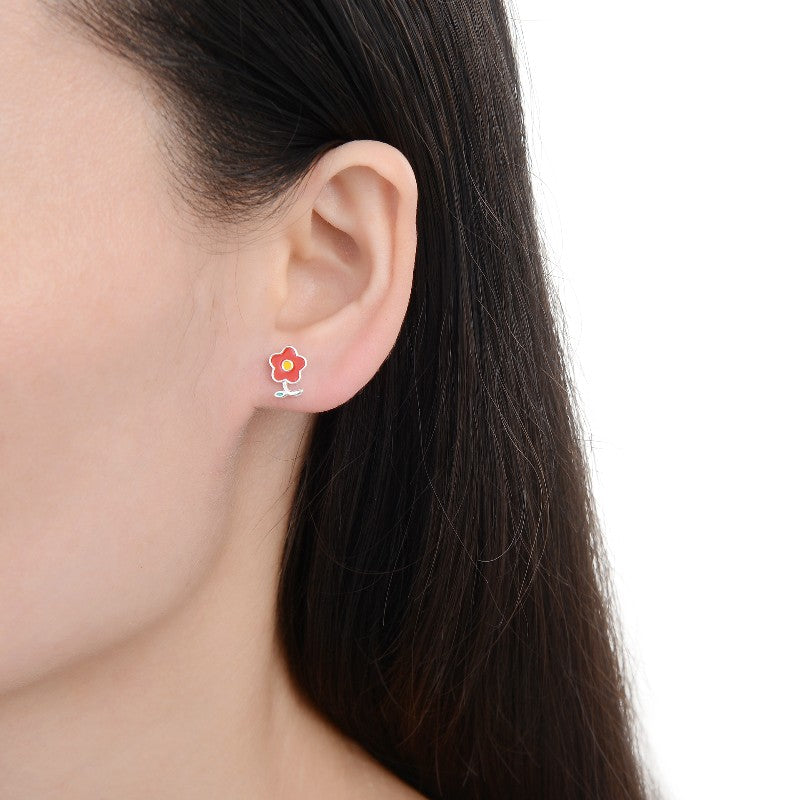 Realza tu look con los aretes flor roja en plata, una pieza que simboliza belleza, energía y feminidad en cada detalle.
