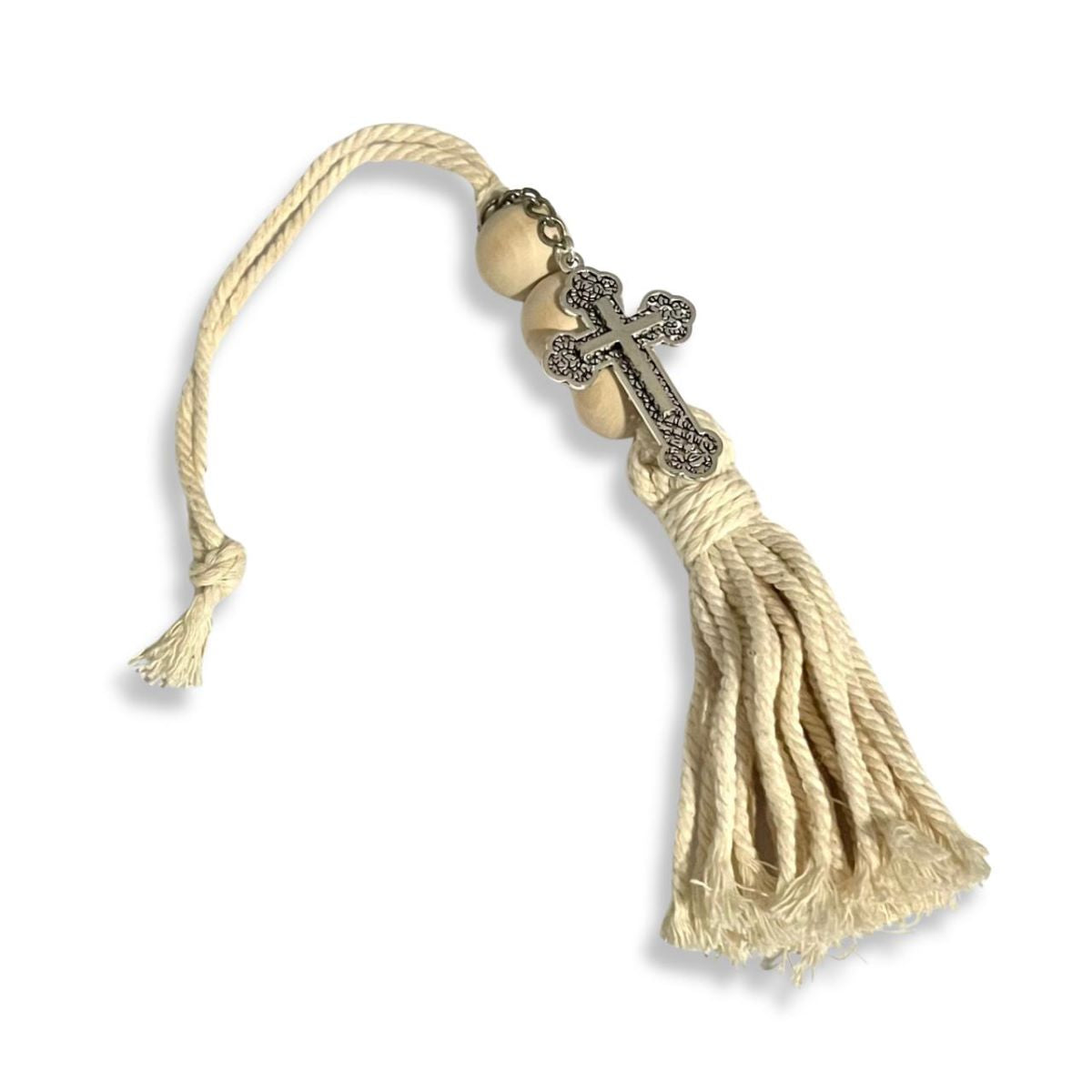 Nuestra Bendición del Hogar combina la calidez de las bolas de madera natural con la fuerza de una cruz de metal, creando un símbolo de fe y protección para cada rincón especial. Ideal para colgar en la puerta de entrada o en la cuna del bebé, llenando el ambiente de bendiciones.