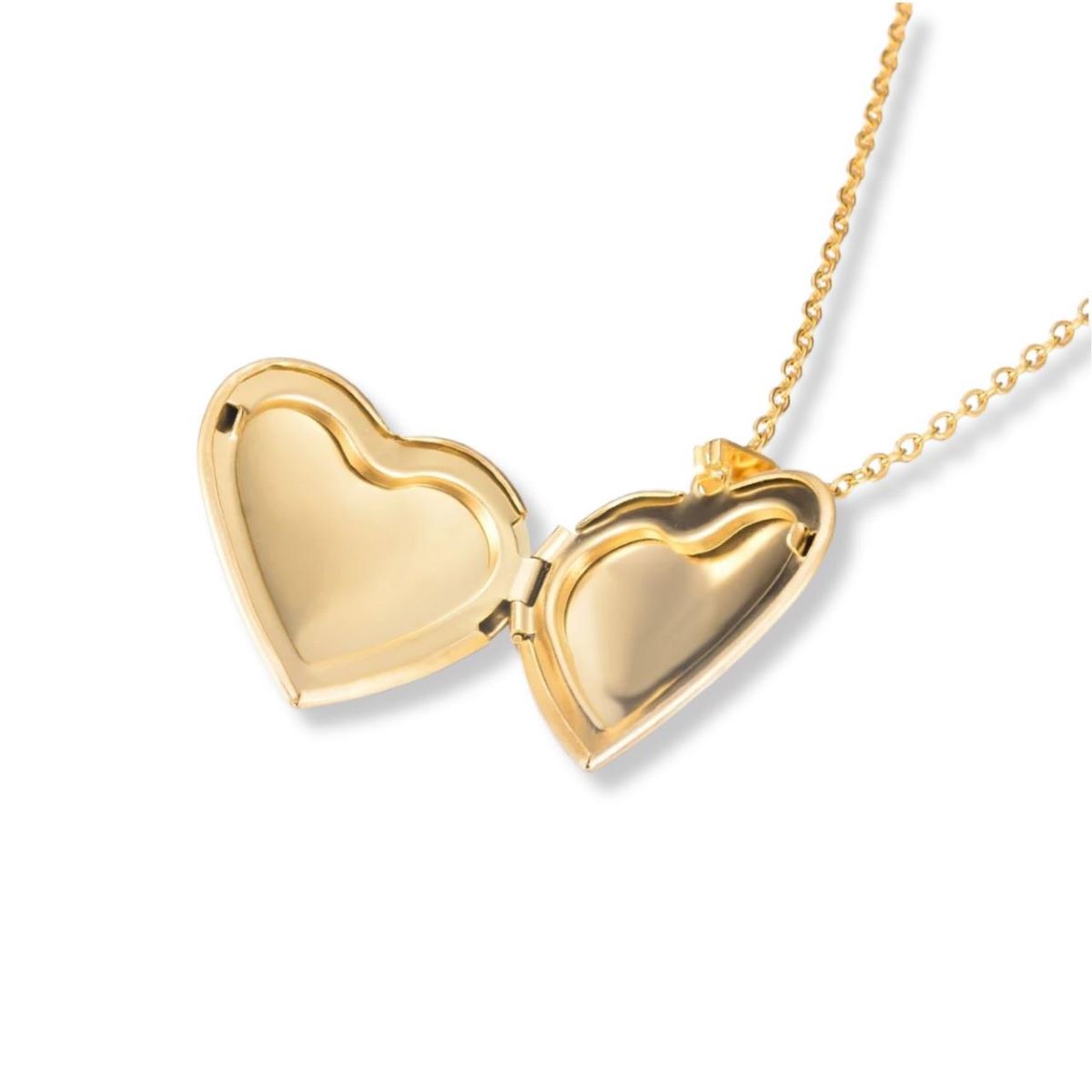 Diseño de relicario: Corazón con compartimento interior para guardar un par de fotos, mensaje o recuerdo significativo.