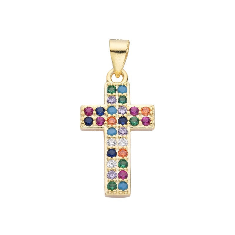 Dije Cruz Dorado con Circones de Colores – Fe y Brillo con Estilo