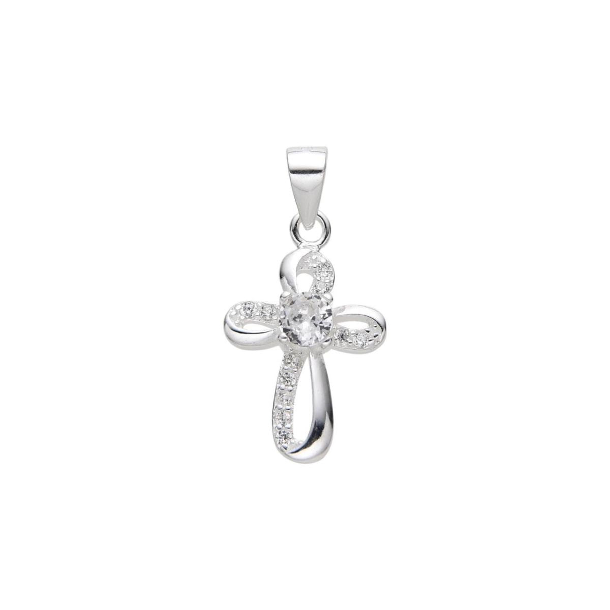 Haz tuyo este dije de cruz moderna en plata con circones y lleva contigo un símbolo de fe con un estilo actual y sofisticado.