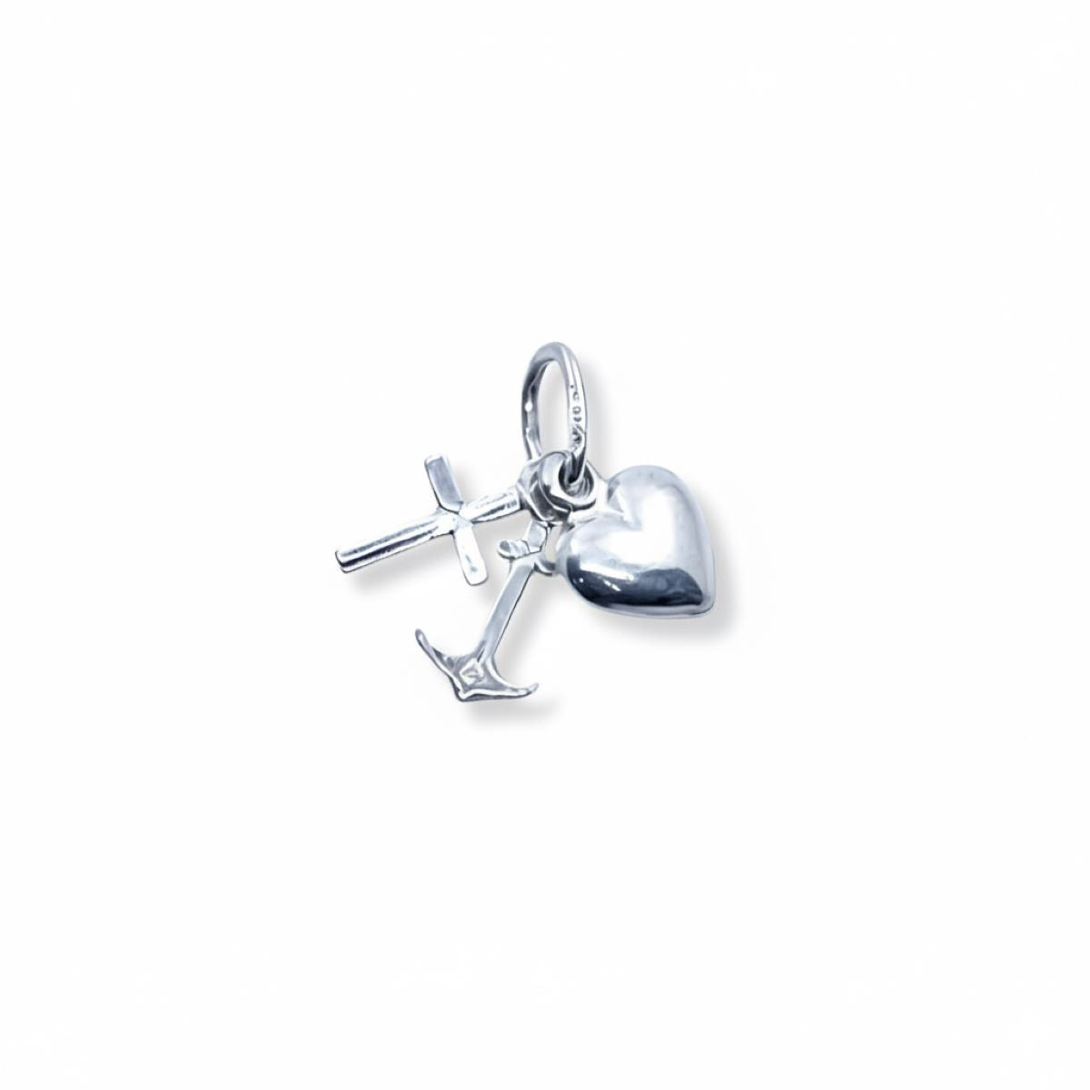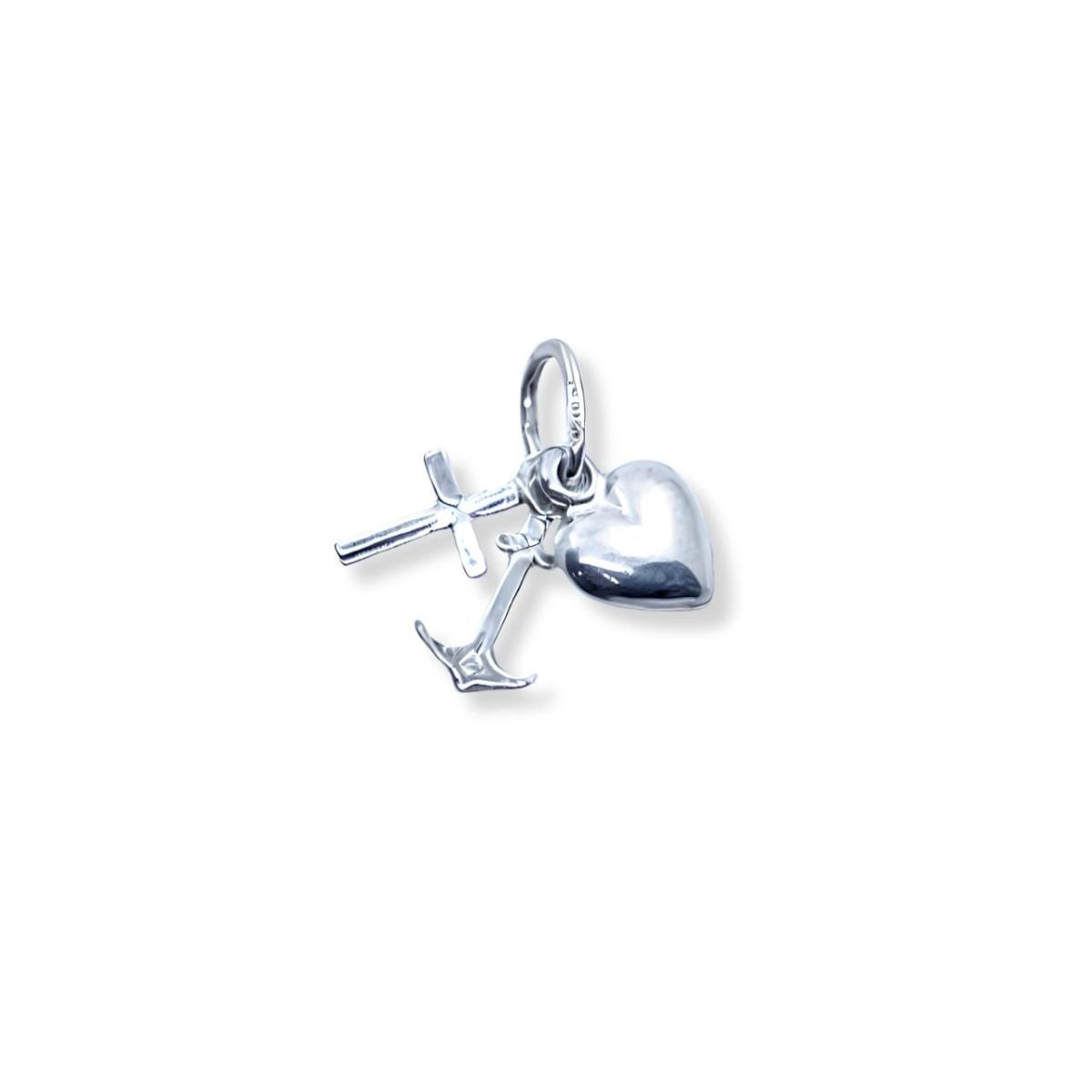Lleva contigo la fuerza de la fe, la esperanza y la caridad con este dije de Las 3 Virtudes en plata, un accesorio cargado de espiritualidad y estilo.