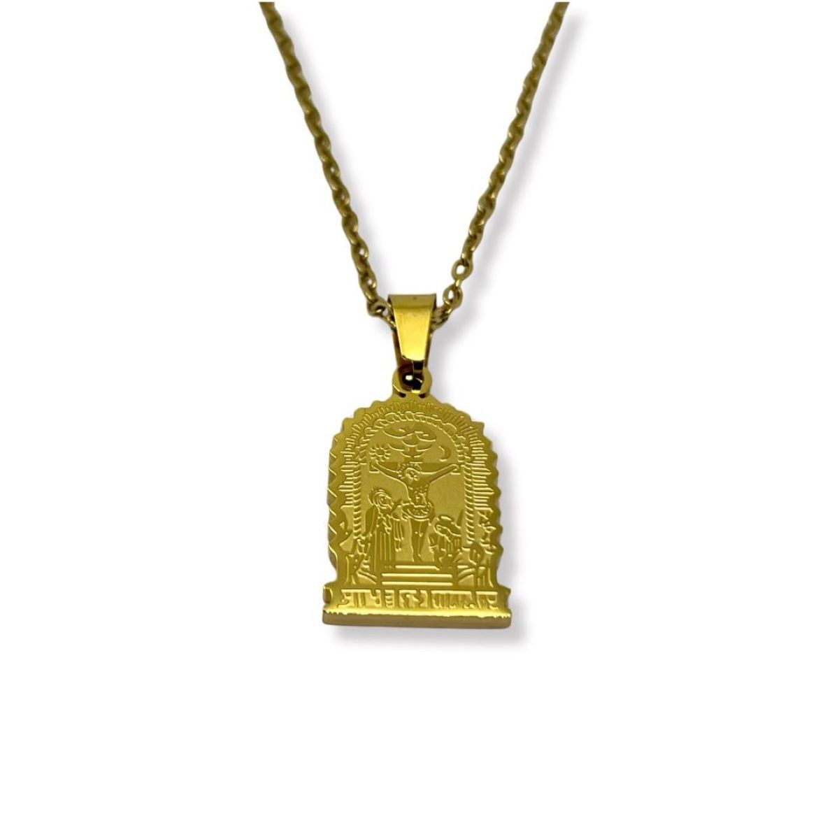 Lleva contigo la imagen del Señor de los Milagros con este elegante dije en acero dorado, acompañado de una cadena a juego. Un símbolo de fe profunda y protección espiritual, ideal para uso diario o como obsequio con sentido religioso.