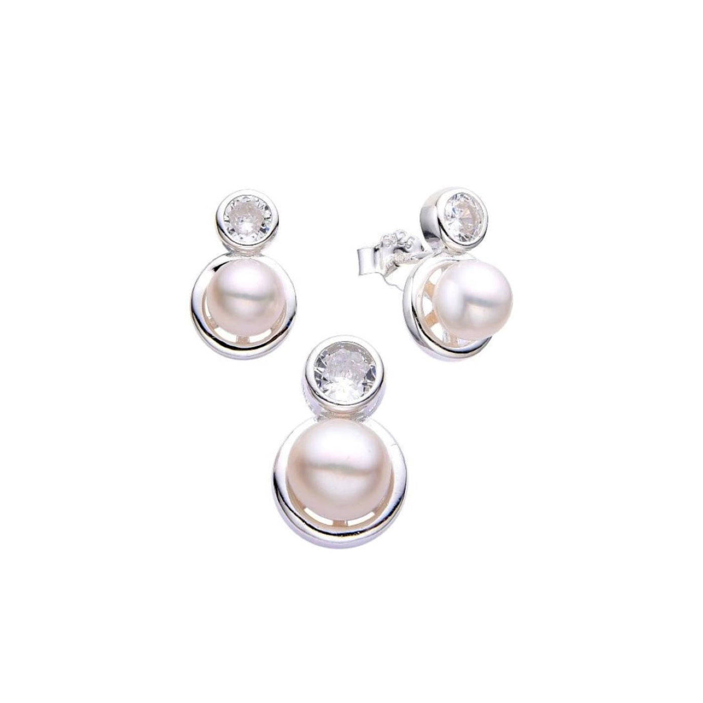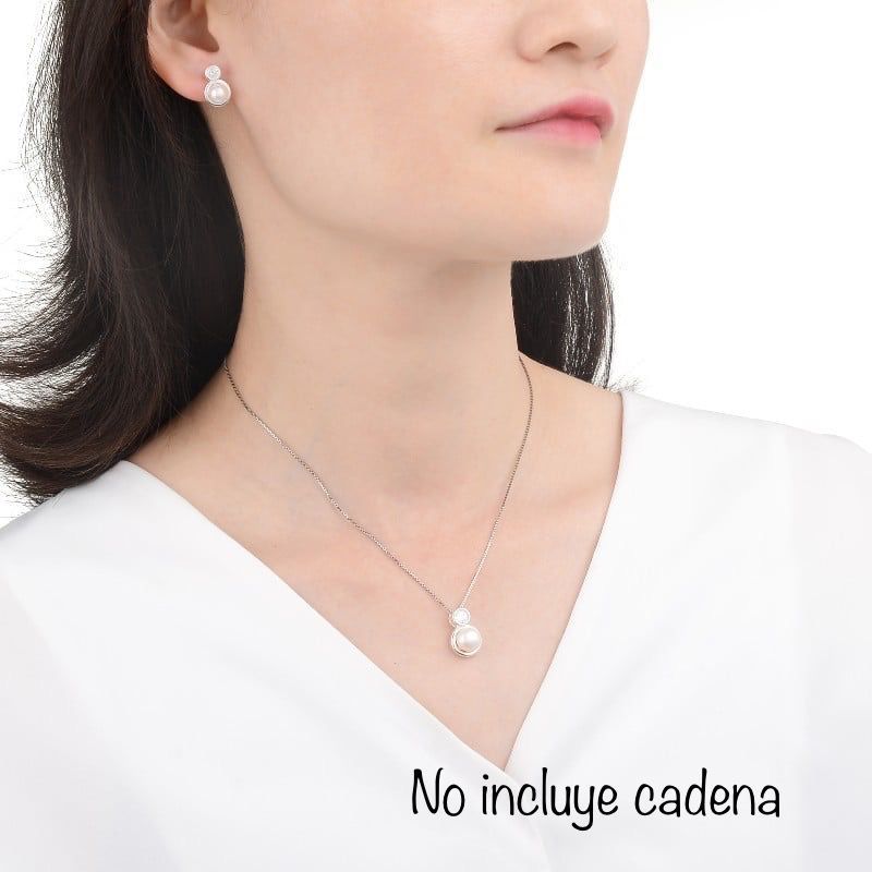 Este refinado set incluye dije y aretes con perlas cultivadas y puntos de luz, elaborados en plata. Un diseño clásico ideal para realzar cualquier look con un toque de distinción.