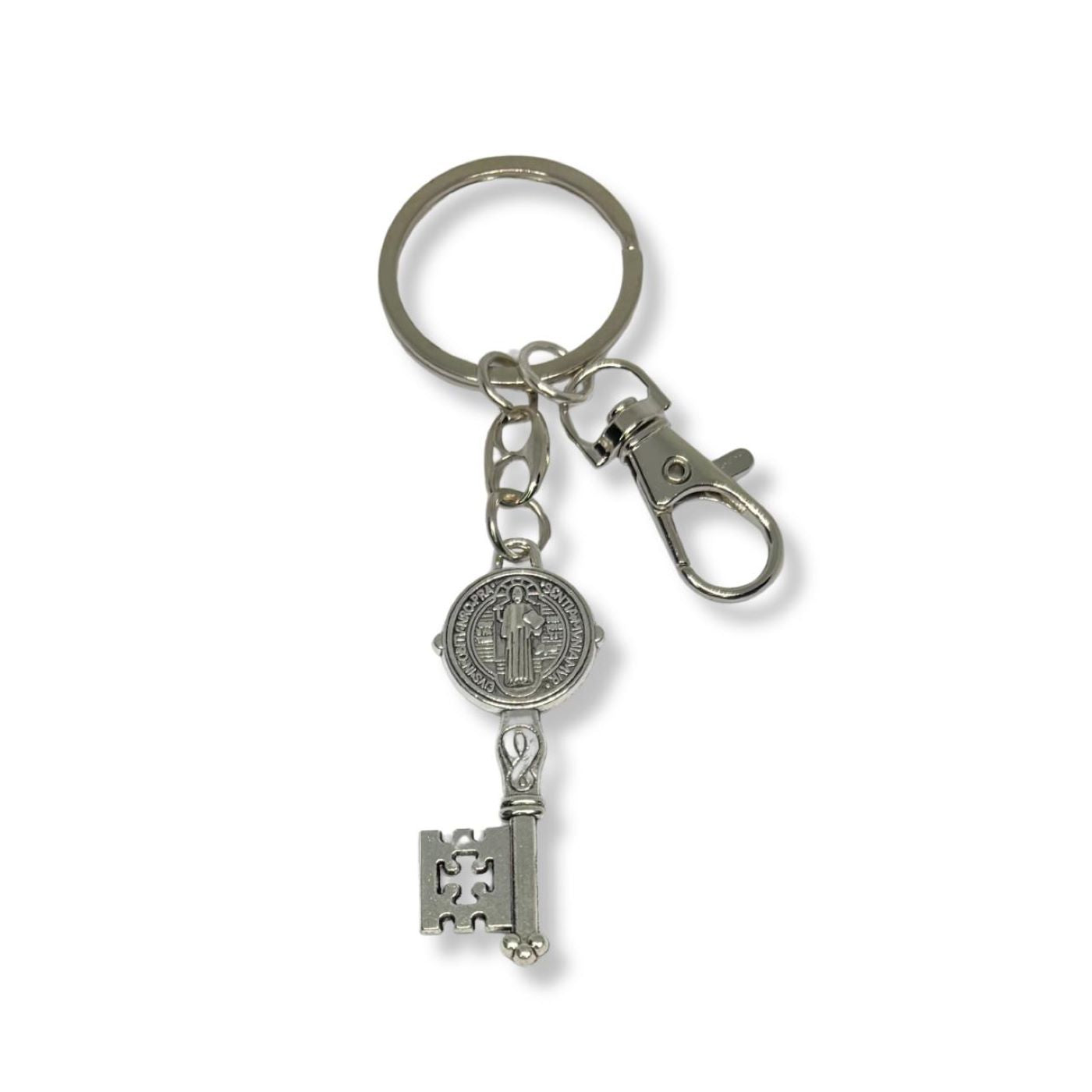 Llavero Llave Medalla de San Benito - Plateado