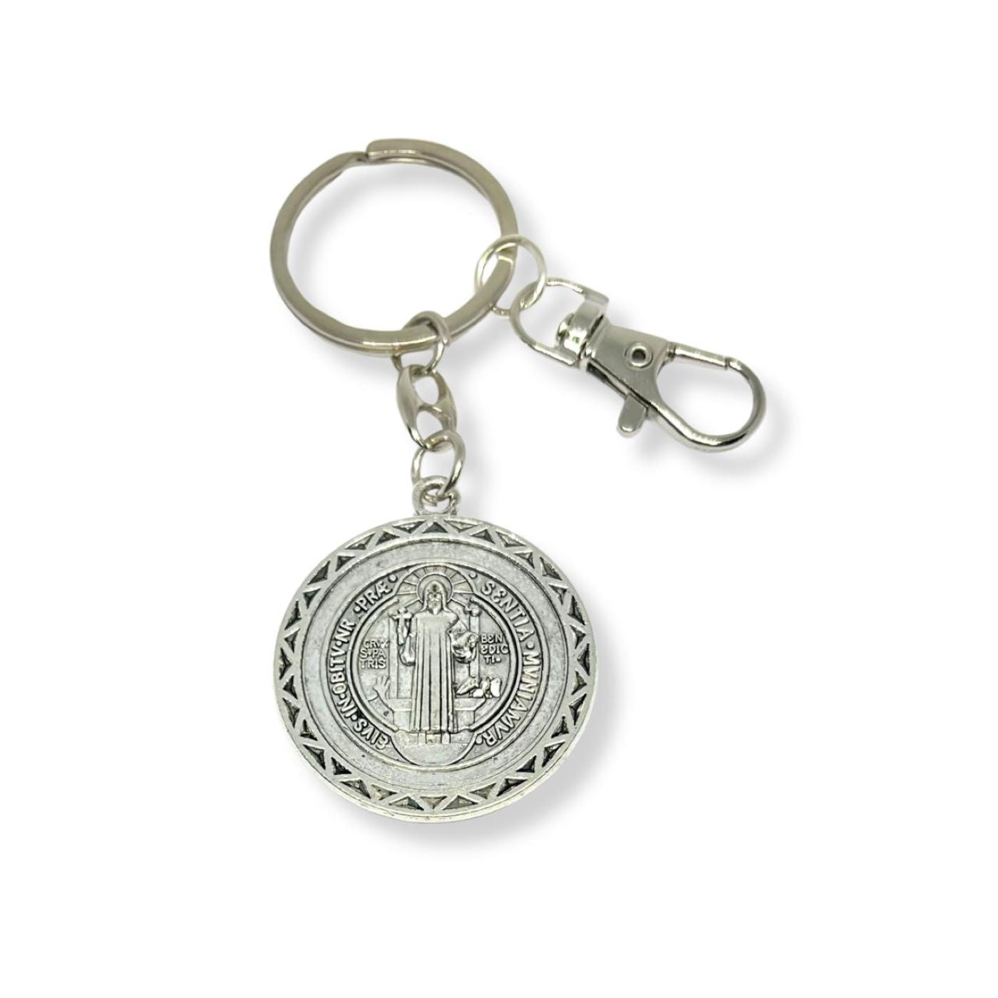 Llavero con Medalla de San Benito Bordes - Plateado
