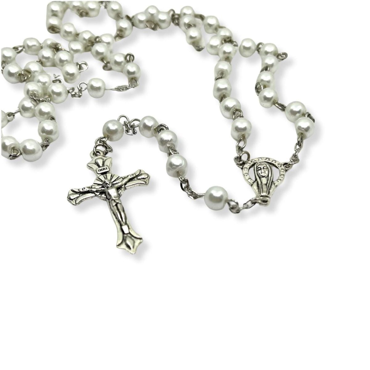 Cada cuenta está elaborada con perlas acrílicas de suave brillo, que reflejan luz y serenidad en cada momento de recogimiento.