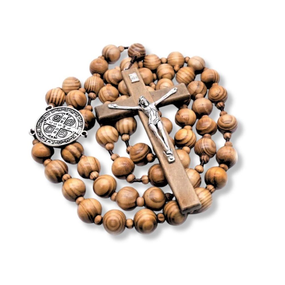 Madera de olivo natural: Cada cuenta refleja la nobleza y calidez de esta madera bendecida, ideal para ambientes espirituales.